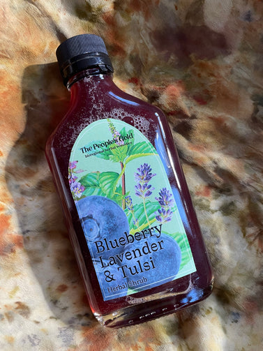 Blueberry, Tulsi, & Lavender: Hand-picked Blueberries, garden-grown Tulsi and Lavender, Local apple cider vinegar, Raw honey.
