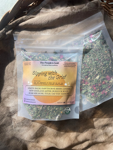 Ingredients: Hawthorne leaf and flowers, Oat tops, Burdock Root, Skullcap, Tulsi, Rose petals, Yarrow, Calendula, Motherwort